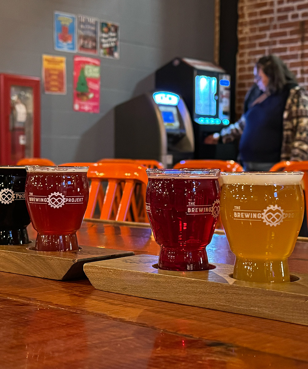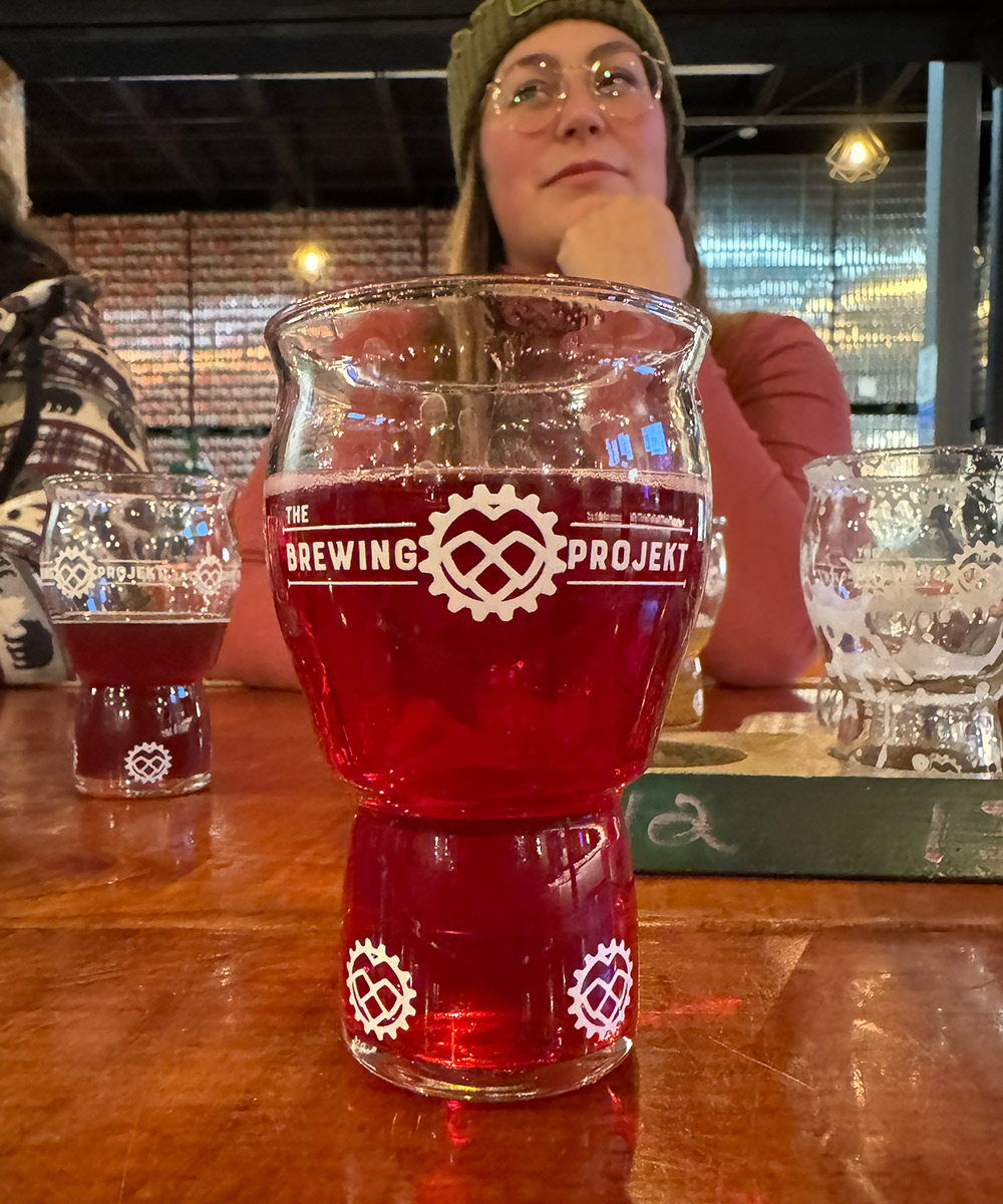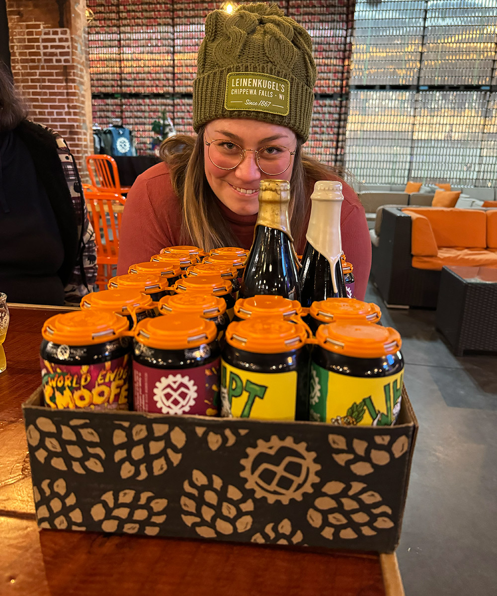 Every time we’re in the land of cheese it’s a must stop at this incredible brewery in Eau Claire, Wisconsin. None other than the BREWING PROJEKT! If you’re a fan of smoothie sours this is the spot for you. They are always guaranteed to have at least 3-4 that will absolutely blow your mind. Oh, you like stouts? They have some slapping stouts too. After we got a few flights and a couple full guys, we left with about 24 to-go beers. We also took 2 stout bombers to bring back to the homeland. You can imagine how jam packed our car is getting especially since we drove Abby’s tiny little chevy missile. Get a look at some of these beers below … You gotta go!