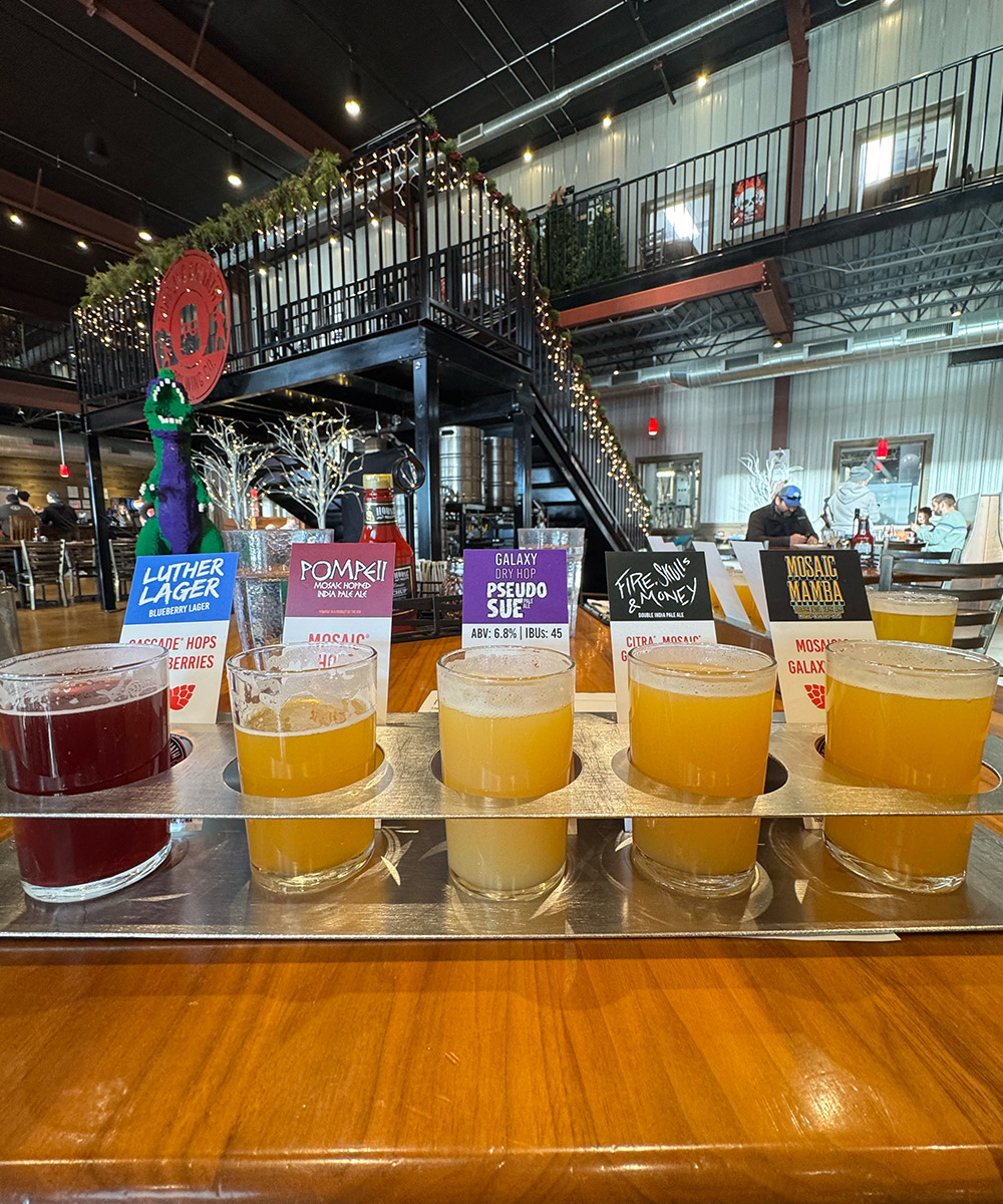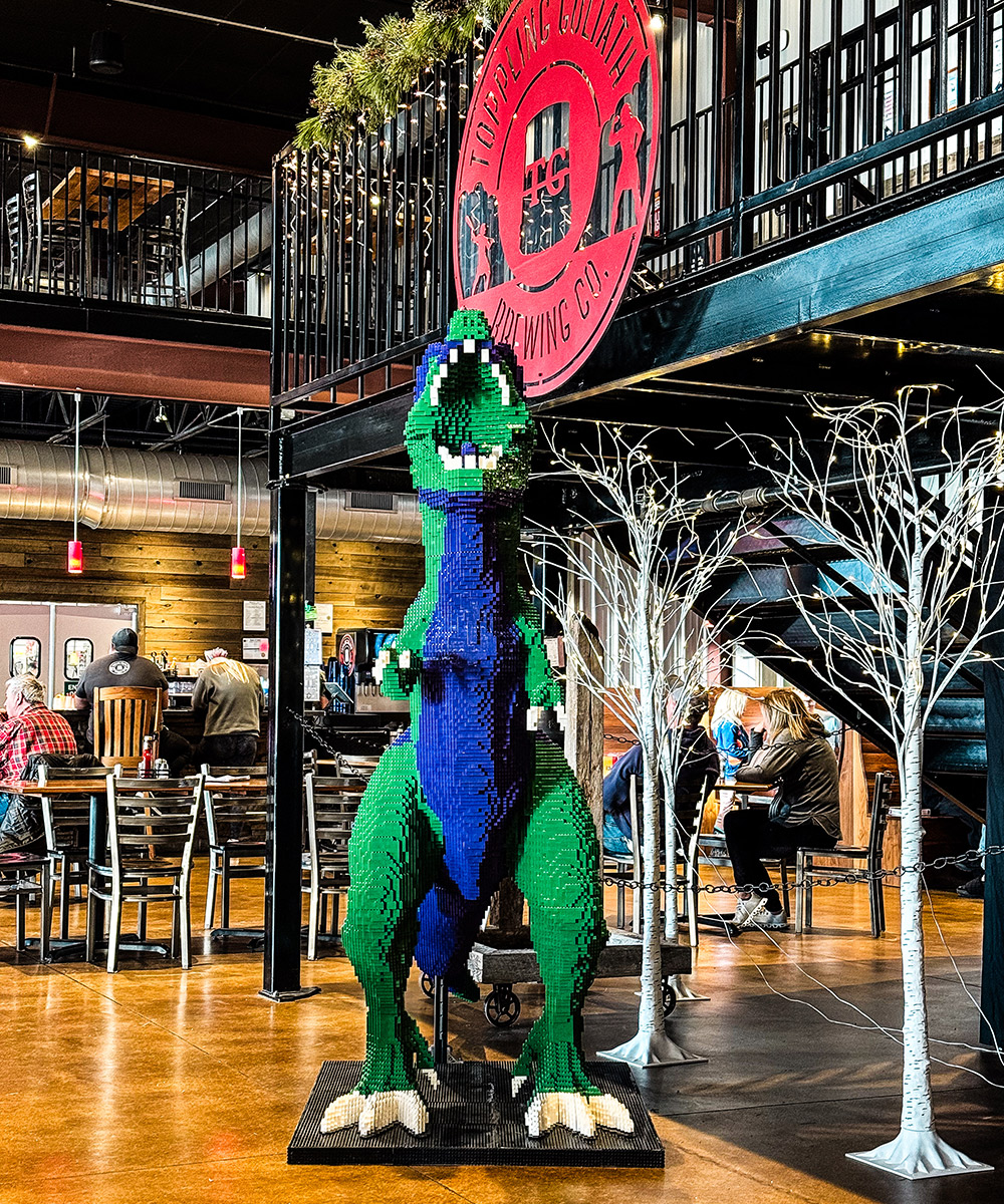 Thanksgiving came to an end … we chilled … we hung out … we got family time on. Then it was time to hit the road. We had another pitstop in Omaha on the docket. We took a slight detour. We did this to make sure we could visit the legendary Toppling Goliath Brewing on the way home. Out in the middle of nowhere Decora, Iowa, this was a must-go spot. If you haven’t had a hazy from there and you love a bangin IPA, you’re 100% missing out. This place was absolutely incredible as well. The hazy brews were off the chart as expected, their food was insane and they also had a lego T-Rex! It didn’t disappoint one bit. We left with even more to-go beers that we barely squeezed into the car but we made it happen! Apologies to the dogs Loki and Cannoli who had to squeeze around said beers. Check out that T-Rex Below!