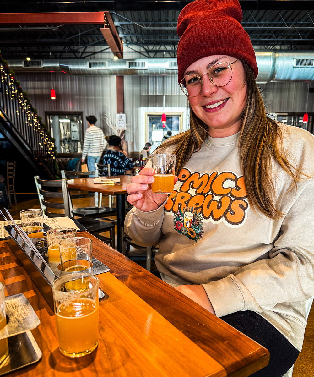 After two breweries and another few hours of driving afters after Thunderhead brewing we were ready to knock out immediately. We left Omaha with our sights set on the next brewery which was Lua Brewing in Des Moines, Iowa. This spot was hands down my favorite brewery of all time. Every single one of their beers was at least a 4.5 out of 5. Not only that but they had my favorite stout that has ever graced this mouth hole. It was called Trouble and it was absolutely incredible. Sadly Abby buried the whole thing while I wasn’t paying attention and watching football. Probably a good thing since I had another 6 hours to drive after that. Man was I sad when I found out they didn’t have any to-go beers of trouble though. I would 100% drive all the way there again specifically for that beer. If you’re ever in this area, you 100% have to go. The brewery itself is beautiful. The merch is awesome. The beer is top notch and the food was incredible. Here’s another gallery of beer that we sipped on while we were there … and yes … it was quite a few. And you’re damn right I got a crewneck sweater. That’s one brewery I had to remember for a very long time. This was also Loki’s first road trip through Iowa so yeehaw to that!